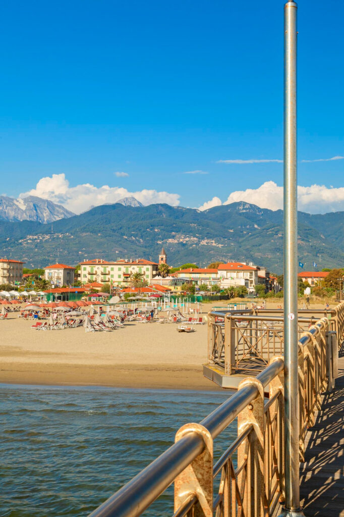 LE SPIAGGE DI FORTE DEI MARMI E VIAREGGIO: QUESTE LOCALITÀ SONO FAMOSE PER LE LORO AMPIE SPIAGGE ATTREZZATE, IL MARE CRISTALLINO E GLI STABILIMENTI BALNEARI DI LUSSO.