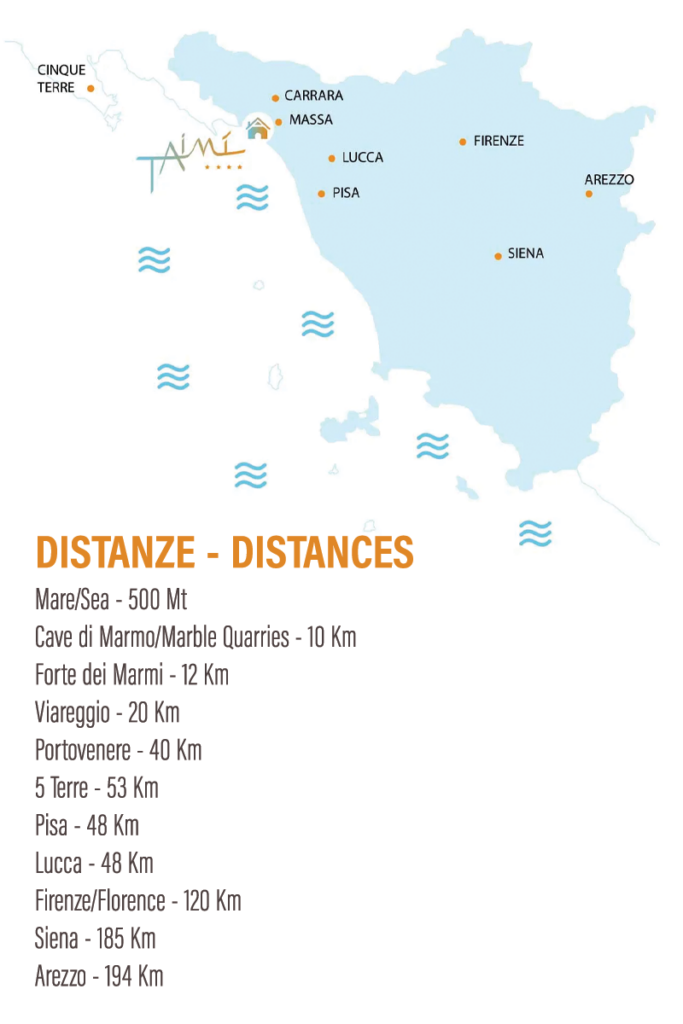 A CIRCA 3 KM: MARINA DI MASSA O MARINA DI CARRARA, I DUE CENTRI ABITATI PIÙ VICINI CON NEGOZI E PASSEGGIATE.